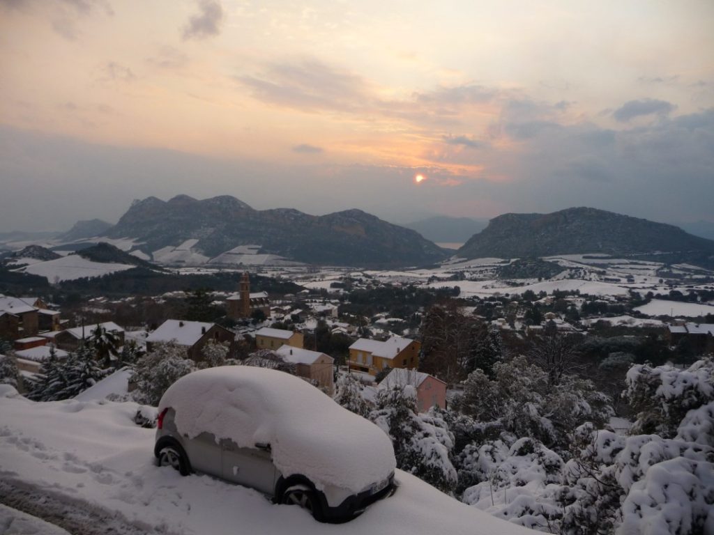 Avec un début de saison plutôt doux et surtout très sec, on pensait que l’hiver nous avait oublié. Mais depuis quelques jours, on peut dire que l’on est bien rentré dans l’hiver. Températures négatives, tempête de neige, on n’avait pas vu cela depuis longtemps. Un épais manteau neigeux à recouvert le village. A la Ficaja, on a relevé une épaisseur de près de 40 cm de neige.
